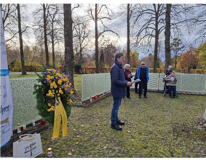 Bei schönem Herbstwetter versammelten sich ca. 30 Gläubige und zufällig vorübergehende, die sich Zeit nahmen zu bleiben, am Gedenkort um der Seligen, die hier begraben sind zu gedenken und nach urchristlichem Brauch an den Märtyrergräbern Anliegen als Fürbitten vorzutragen und um die Fürbitte der Seligen zu bitten. Besonders wurde um den Frieden im Heiligen Land und um Frieden in der Ukraine gebetet, aber auch für alle Verstorbenen.