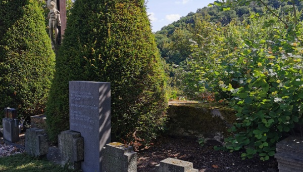 Ein gewaltiger Basaltblock, gut 800 kg, der das alte Grabkreuz für Pater Alfons Spix sscc auf dem Arnsteiner Klosterfriedhof umfängt, steht und stemmt sich „Gegen das Vergessen!“.