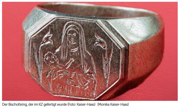 Sogar auf dem Bischofsring, der für die heimliche Priesterweihe des seligen Karl Leisner angefertigt wurde und die der französische Bischof Gabriel Piquet whärend der Weiheliturgie trug, war unsere Liebe Frau von Dachau abgebildet. Der Ring wurde heimlich von einem russischen Mitgefangenen während seiner Arbeit für die Firma Messerschmitt aus Messing gefertigt. Dieser Ring wurde mit keinem anderen christlichem Symbol verziehrt, als dem Bild Unserer Lieben Frau von Dachau.