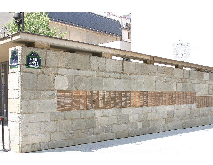 doucemauer: Auf der Mauer der Gerechten in Paris sind die Namen aller von Yad Vashem geehrten Franzosen verzeichnet. Originalfoto: jcw Creative Commons Attribution-Share Alike 3.0 Unported Licence